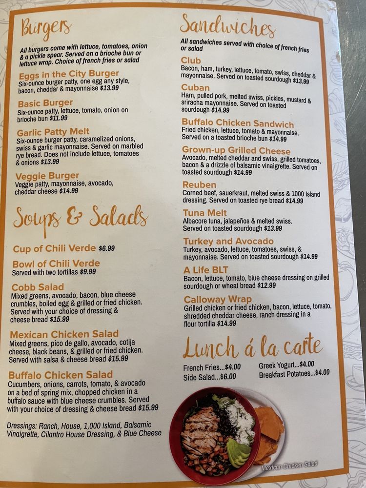 Eggs in the City is a breakfast and brunch spot located in Millcreek City, Utah, known for its diverse menu offerings and cozy atmosphere. The restaurant offers a range of options, from classic Eggs Benedict to unique omelet creations like the Wild Card Omelet and Fiesta Omelet. With a variety of skillets, chef specials, and off-the-griddle items like the Meat Lovers Skillet and Cinnamon Swirl Pancakes, there is something for everyone to enjoy. Customers praise the friendly service, quick delivery of food, and the option to customize dishes to their liking. The outdoor seating, beautiful art on the walls, and overall welcoming vibe make Eggs in the City a must-visit breakfast spot for locals and visitors alike. As a food reviewer, I highly recommend trying out their signature dishes and experiencing the delicious flavors for yourself.